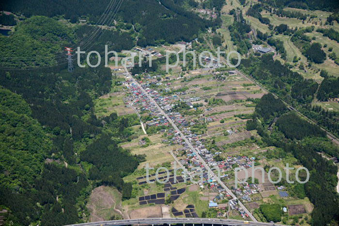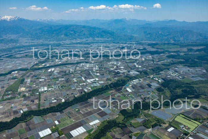 昭和村周辺より沼田地区の河岸段丘後方は谷川岳(2022/05)