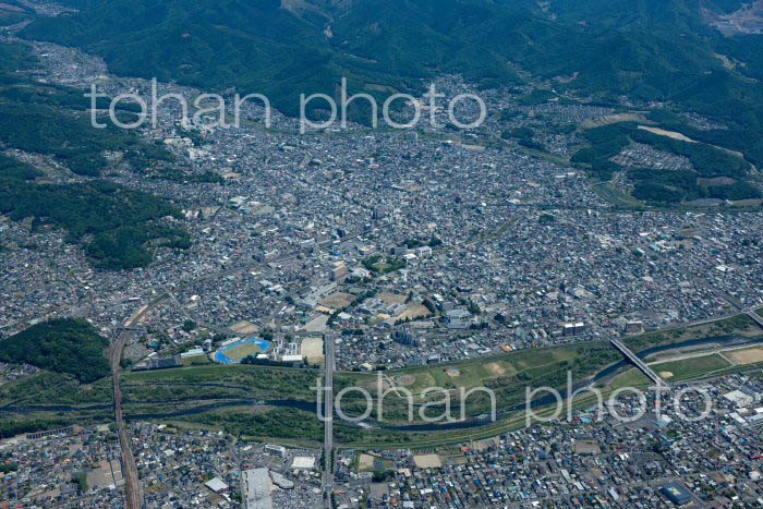 富岡製糸場(世界文化遺産)周辺より富岡市街地(2018/5)