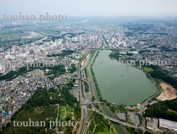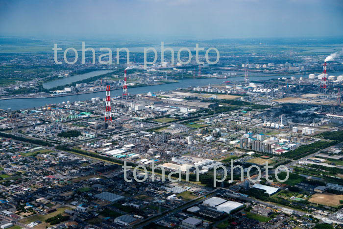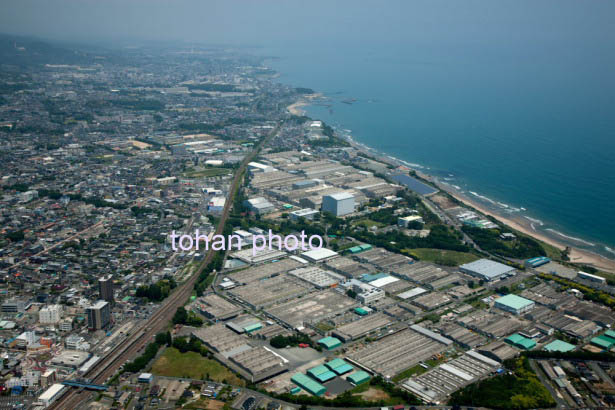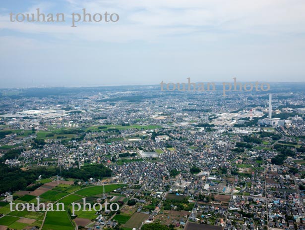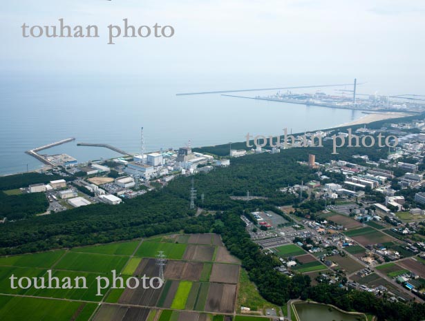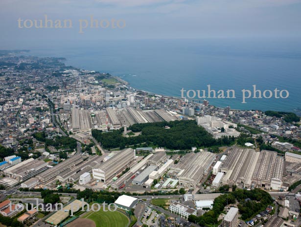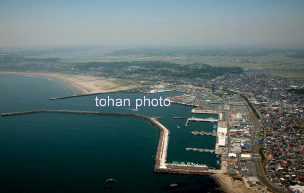 鹿島灘より茨城港大洗地区と大洗サンビーチ,大洗町の街並み(2014/6)