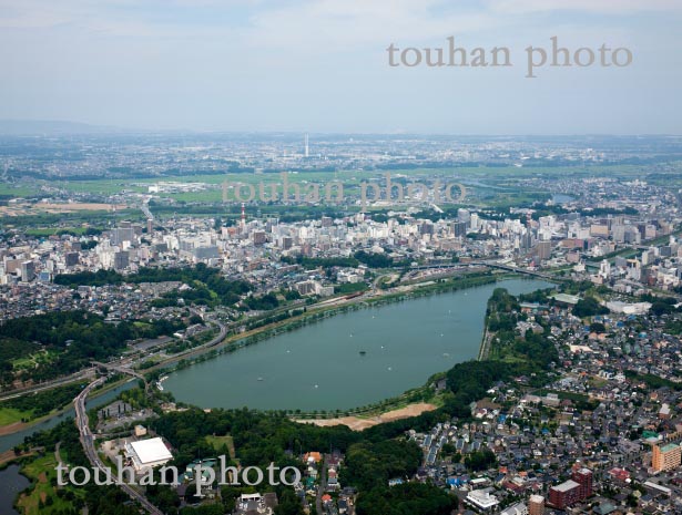 偕楽園と千波湖より水戸市街地と水戸駅方面(2013/7)