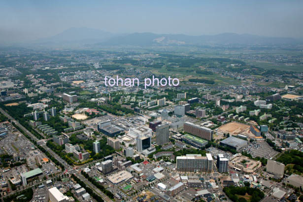 つくば駅(つくばエクスプレス)とつくば学園都市市街地と筑波山(2014/6)