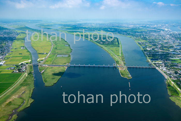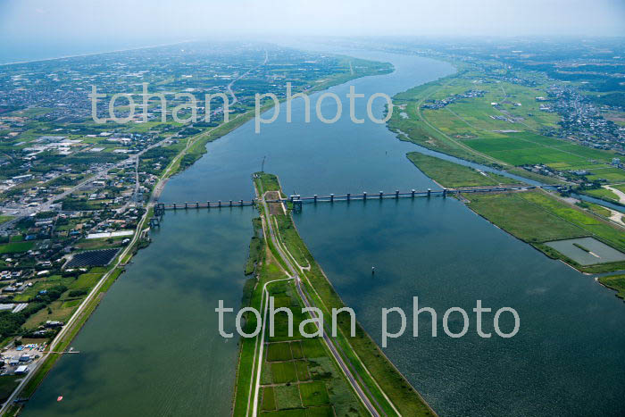 利根川,常陸利根川,黒部川の合流地より銚子(利根川河口)方面(2019/8)