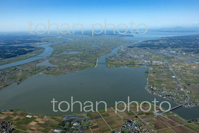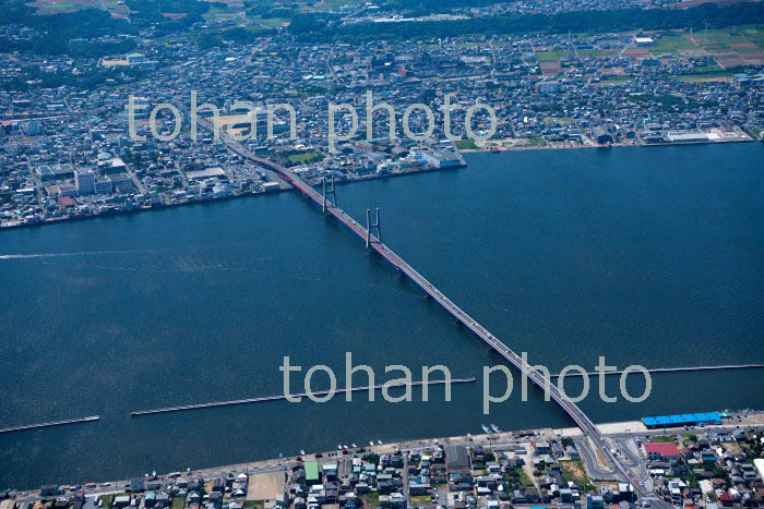 銚子大橋(波崎より銚子方面)と利根川(2019/8)