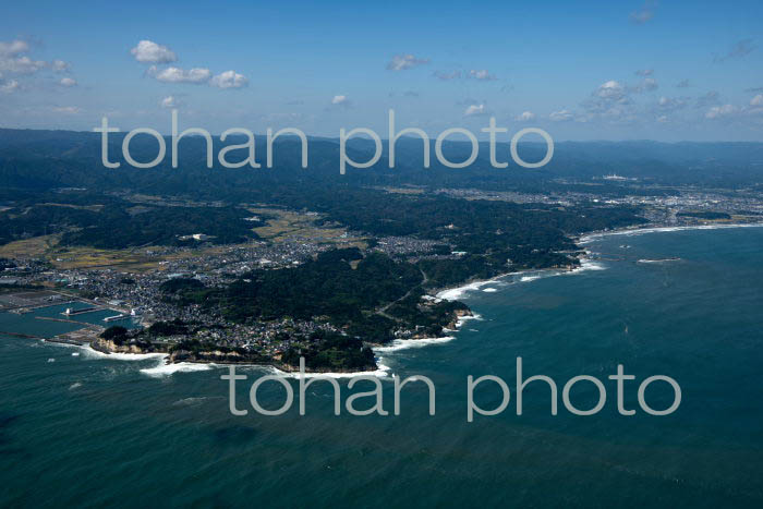 五浦岬周辺の海岸線と大津港の町並み(2021/10)