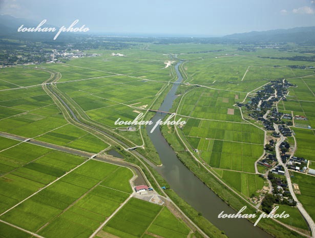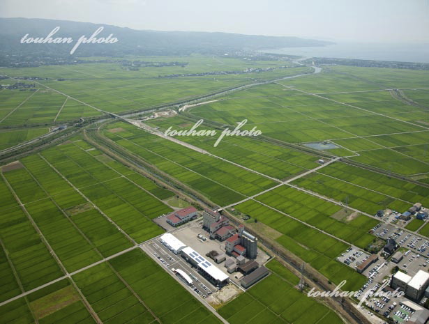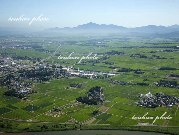 越後平野(加治川より中条方面)中央は日本海沿岸東北自動車道(2011/8)