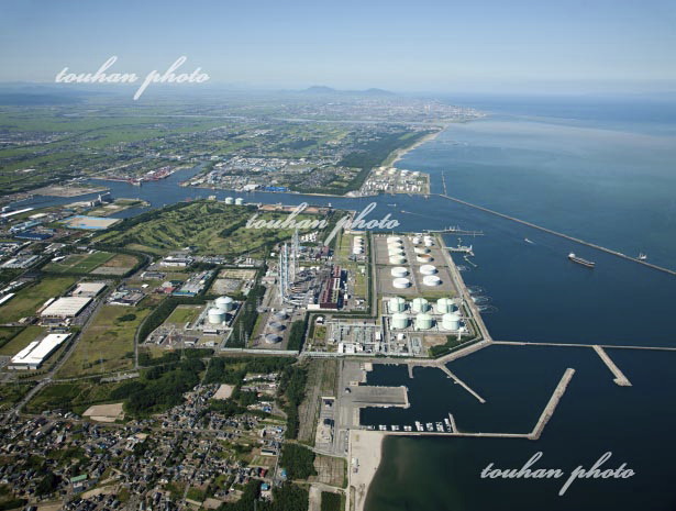 東新潟火力発電所,新潟東港より新潟市街地と越後平野(2011/8)