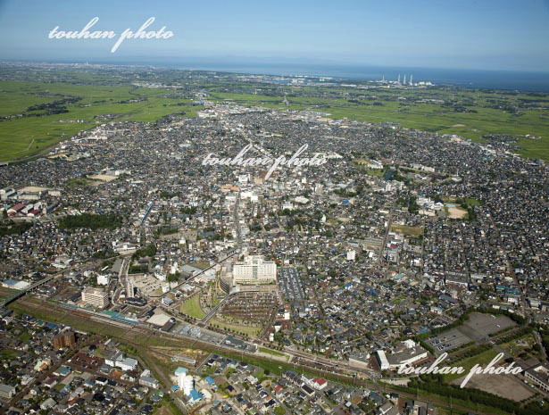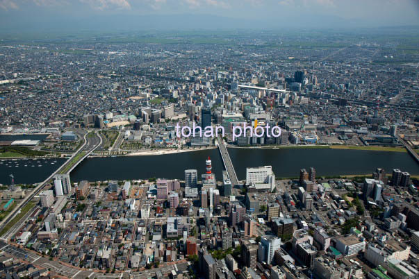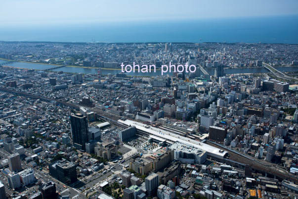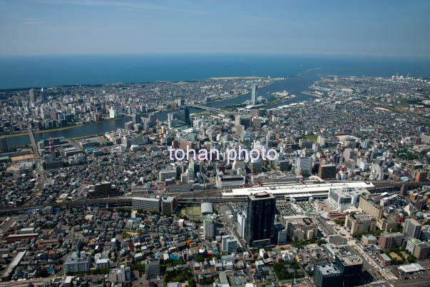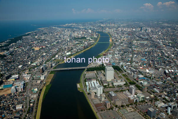 新潟駅周辺より新潟市街地,信濃川河口,日本海方面(2014/8)