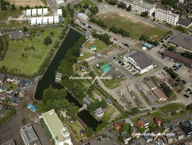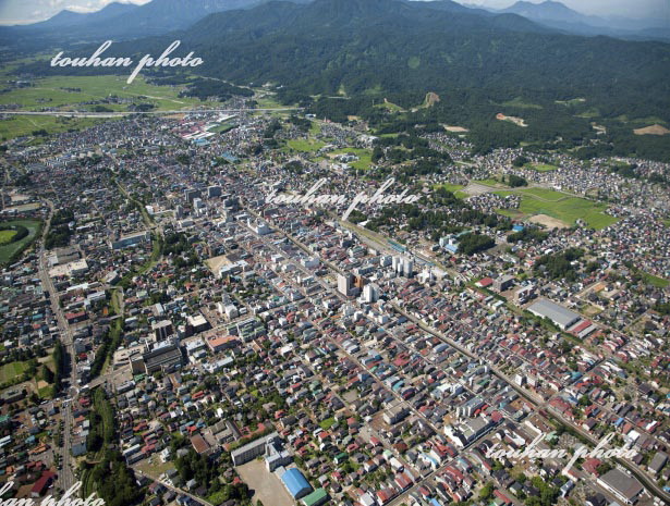 高田駅と雁木の町並みの高田市街地(2011/8)