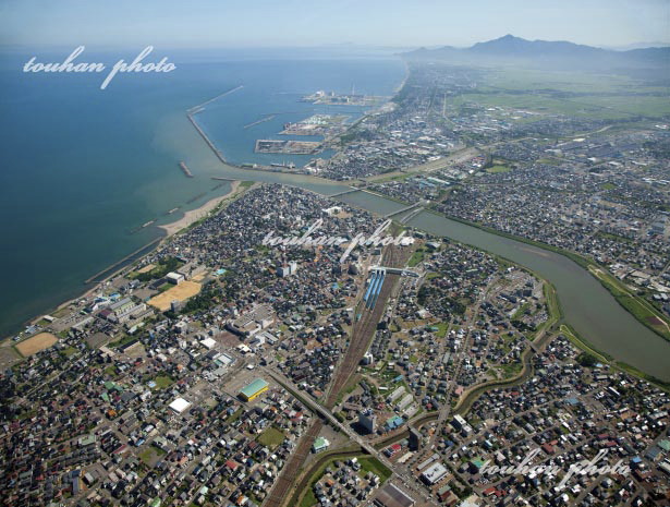 新潟西港と新潟空港と信濃川河口(2014/8)