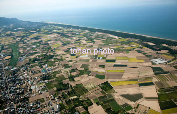 新潟市内野地区砂丘跡地の畑周辺と日本海(2014/8)