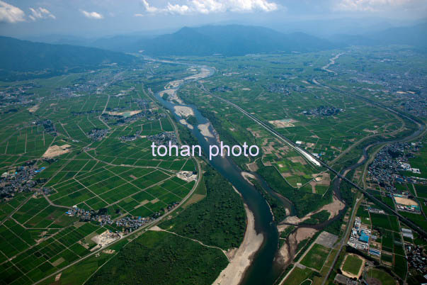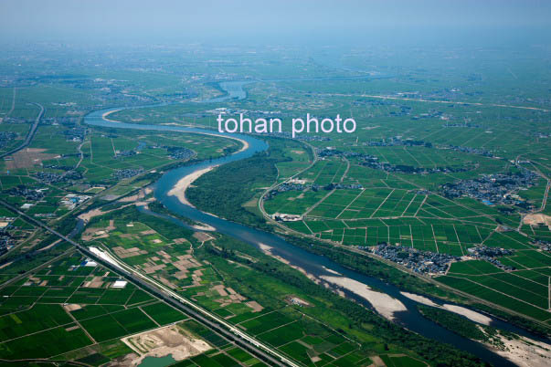 阿賀野川と早出川(秋葉区周辺より上流方面)(2014/8)