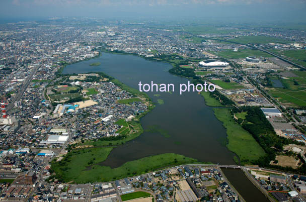 HARDOFFECOスタジアム新潟,デンカビッグ スワンスタジアム周辺より新潟市街地(2014/8)