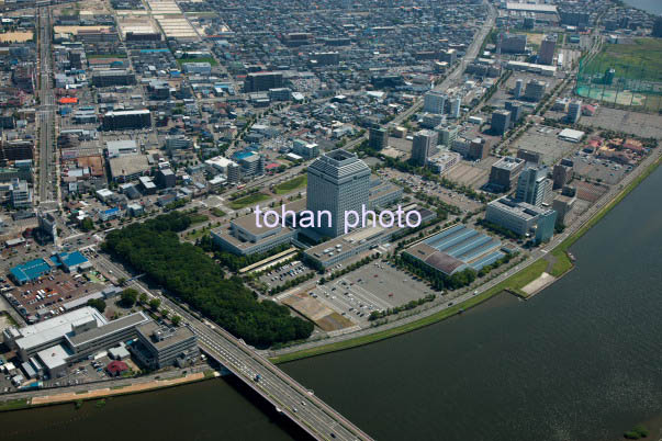 新潟県庁と信濃川より新潟市街地方面(2014/8)
