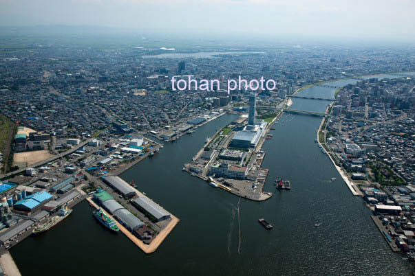 万代島(フェリーターミナル,朱鷺メッセ)と信濃川周辺より新潟市街地(2014/8)