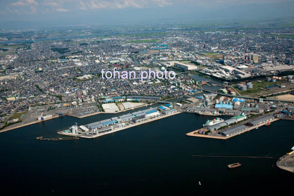 東埠頭と新潟港国際旅客ターミナルより北越紀州製紙工場方面(2014/8)