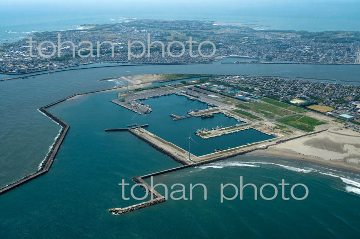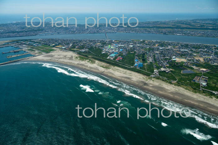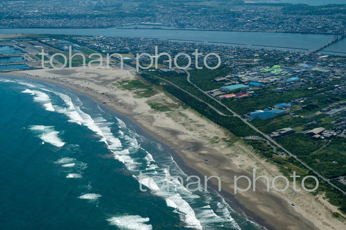 波崎漁港と利根川,銚子市街地方面(2022/05)