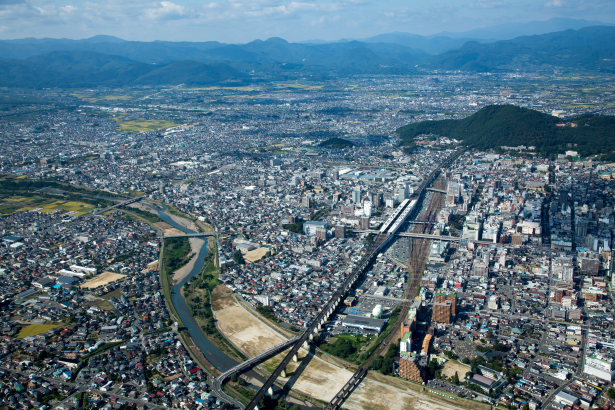 郡山駅と郡山市街地(2016/8)