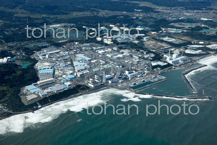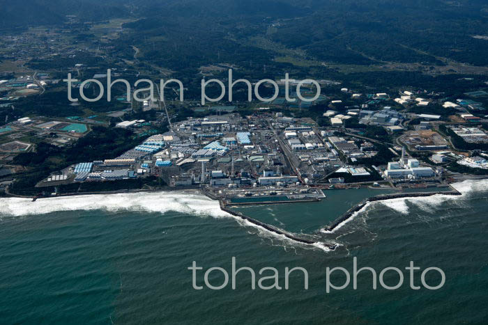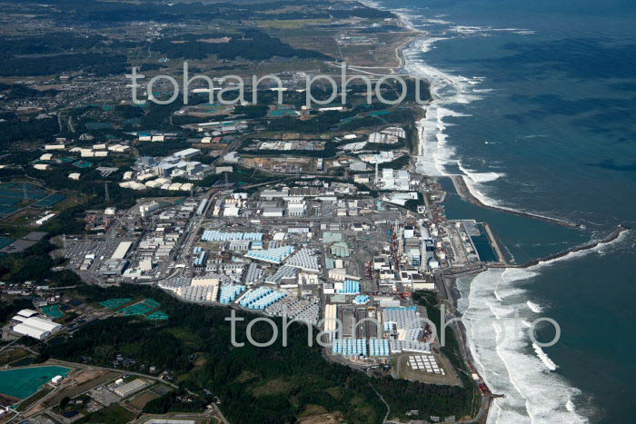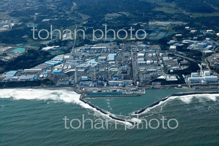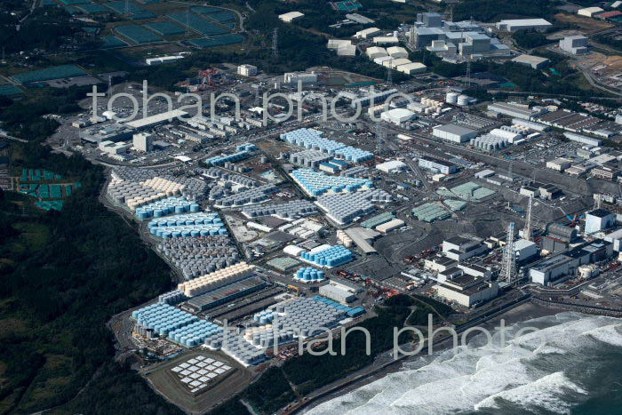 福島第一原子力発電所と汚染水タンク群(2021/10)