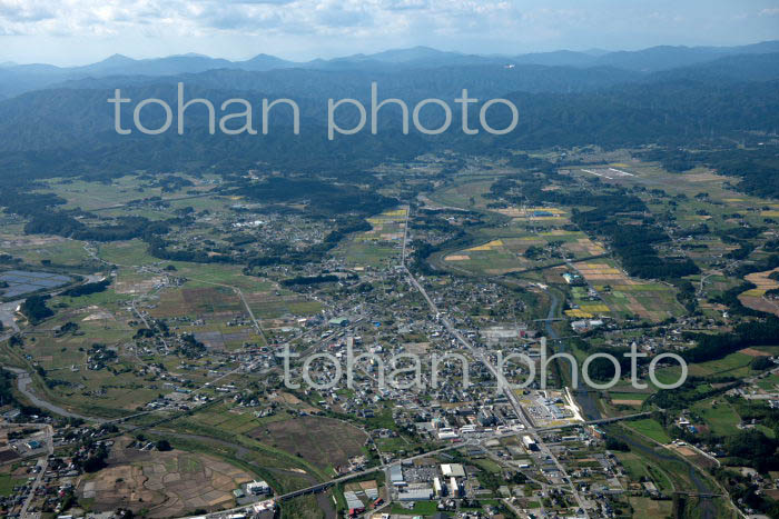 庄内平野(庄内町高田麦周辺)より鶴岡市街地,日本海方面(2016/8)