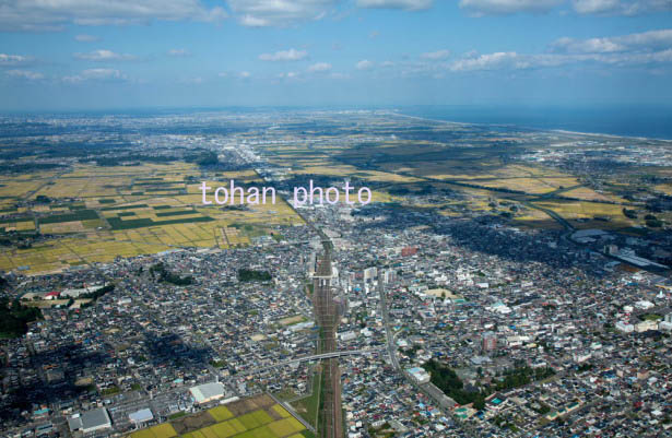 岩沼駅と岩沼市街地より仙台平野(2015/9)