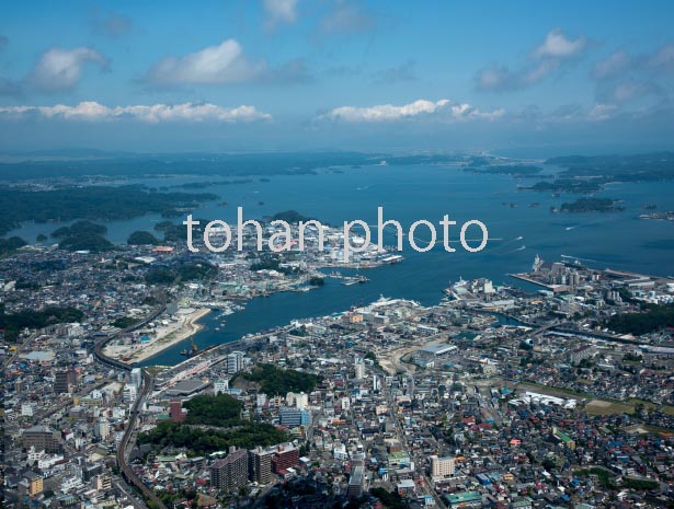 塩釜市街地(本塩釜駅と塩釜港)周辺より松島湾方面(2016/8)