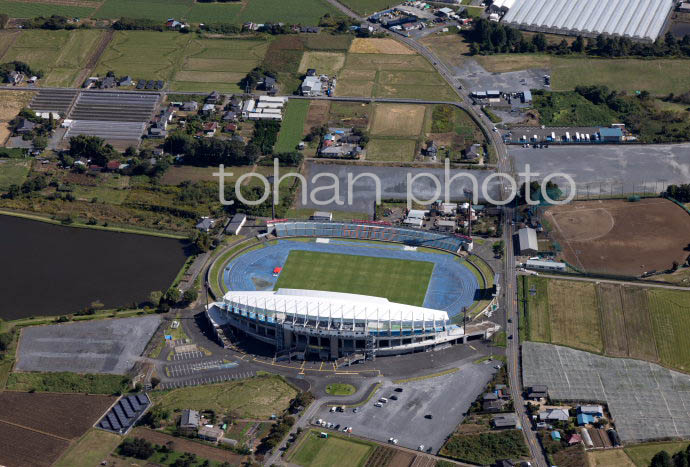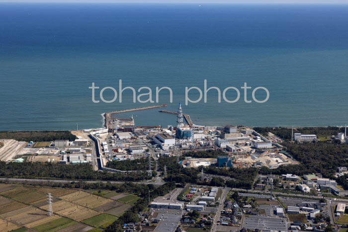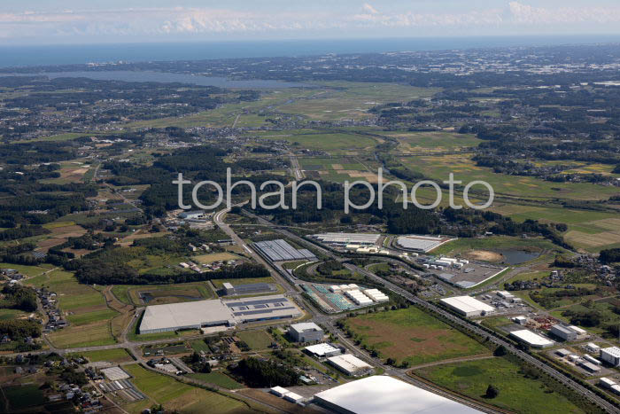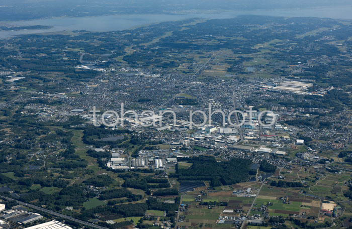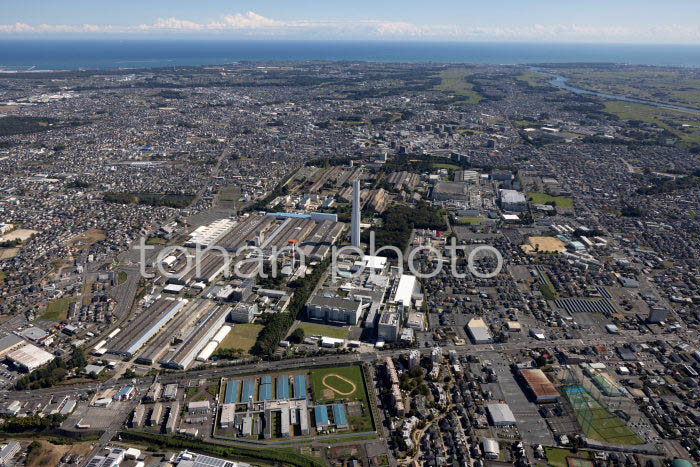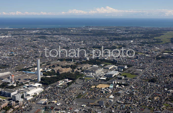 ひたちなか市工場群と勝田駅周辺市街地の街並みと太平洋方面(20241013)
