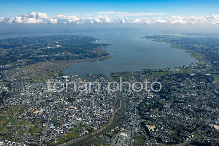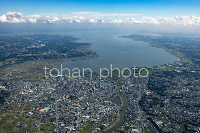土浦駅と土浦の街並みより霞ケ浦(20241013)