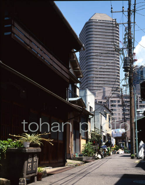 佃島の住宅と高層ビル(東京都中央区)1992