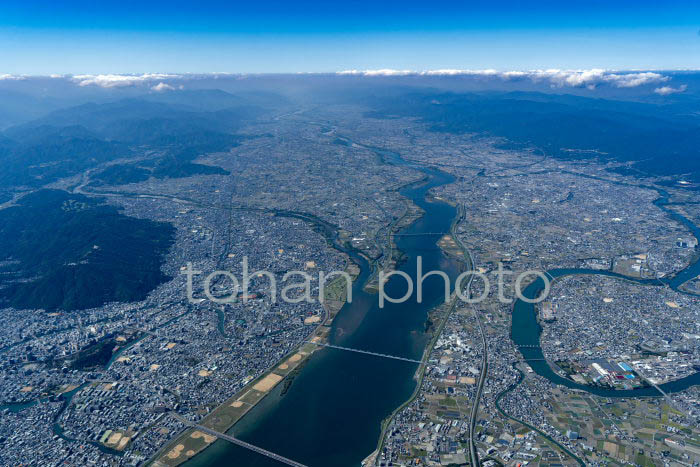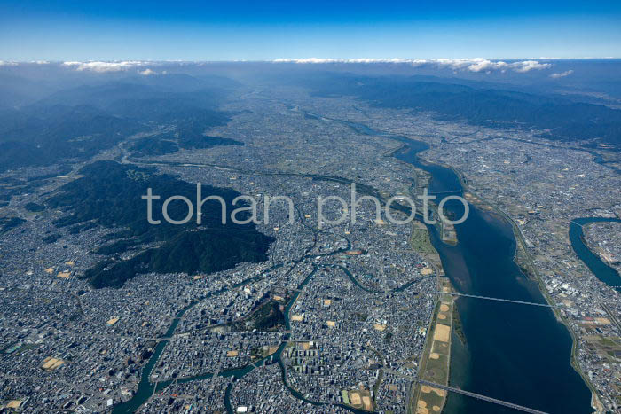 徳島市の街並みより徳島平野と吉野川(20231018)