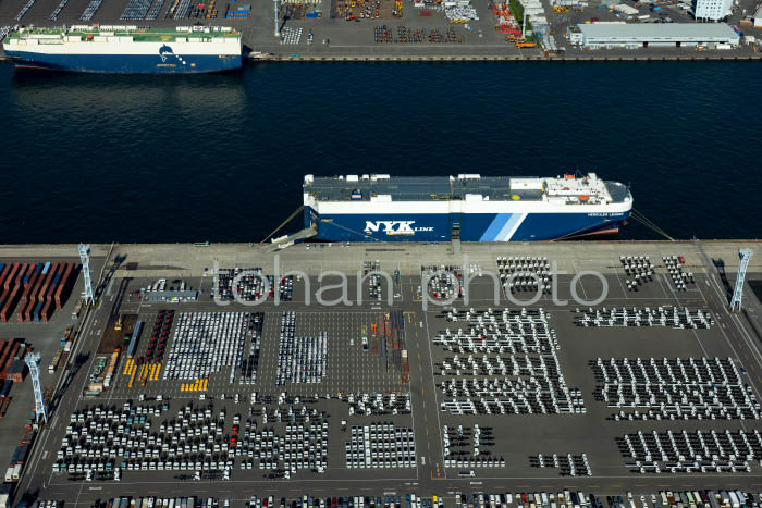 自動車運搬船と横浜港(2021)