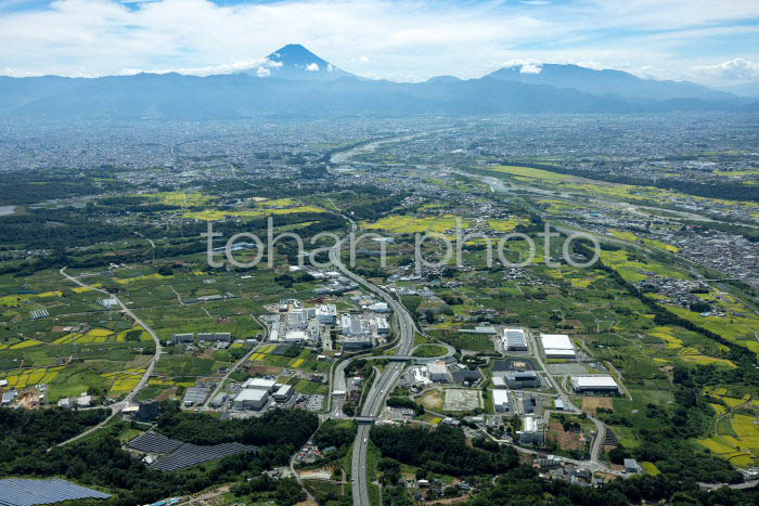 韮崎IC(中央自動車道)と工場群地区より甲府盆地,富士山方面(202391)
