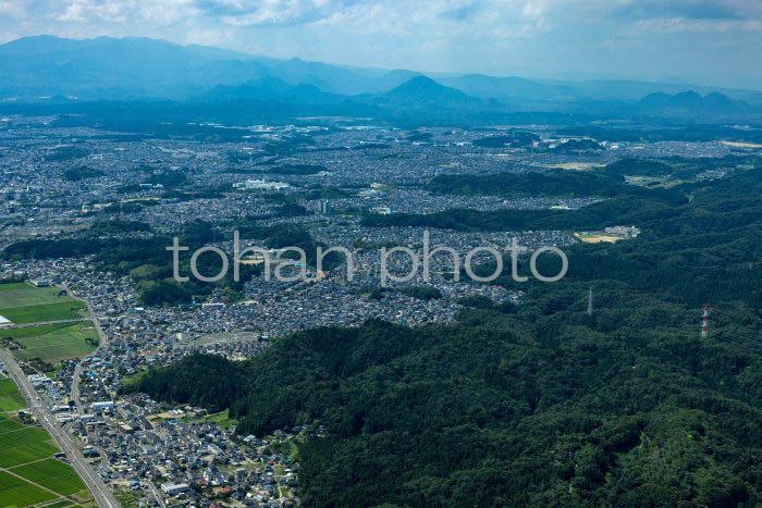 仙台市青葉区国見地区の街並みより仙台市街地方面(2023728)