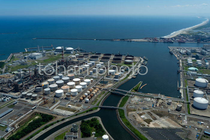 砂押川河口と燃料タンク群(仙台塩釜港仙台港区)(2023728)