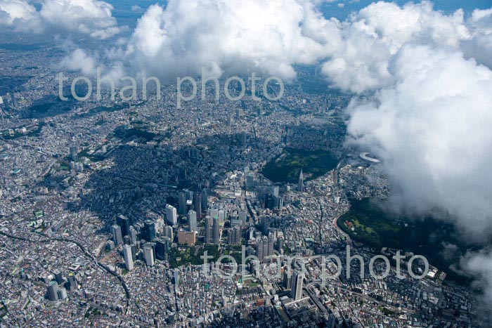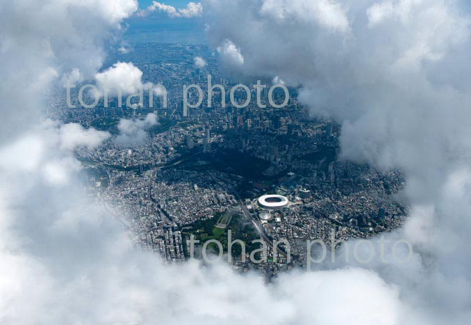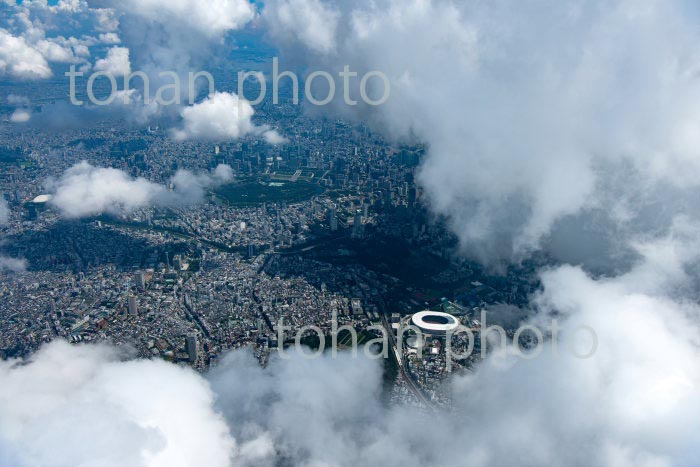 雲の隙間より国立競技場,千駄ヶ谷周辺より東京の街並み(2020/8)