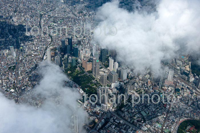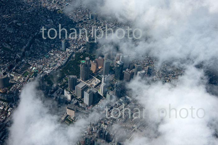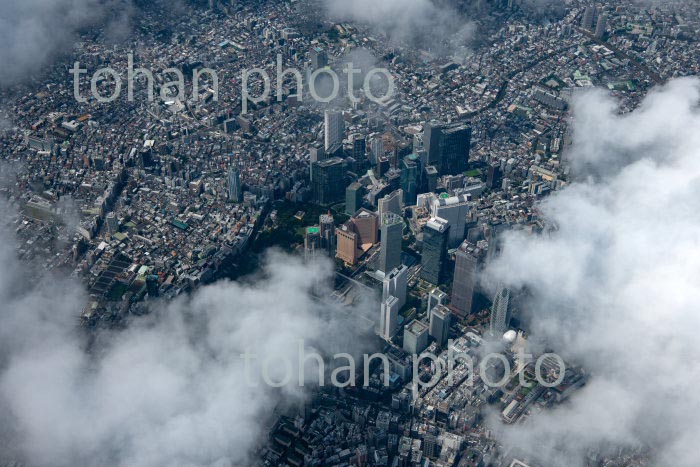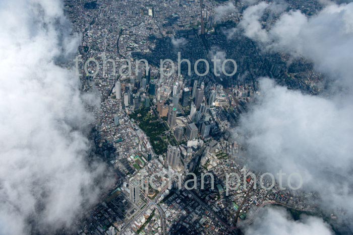 雲の隙間より見える新宿西口ビル群,新宿駅より東京の街並み(2020/8)