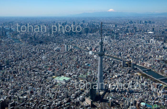東京スカイツリーより東京の街並みと富士山(2020/3)