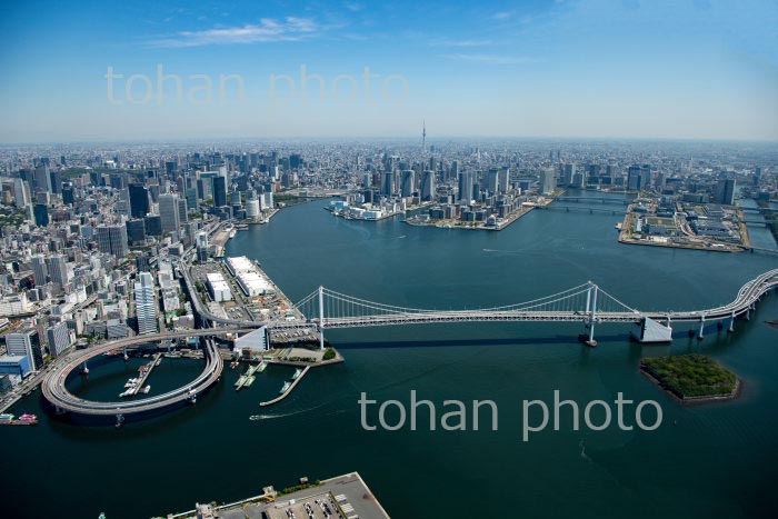 レインボーブリッジと東京港より東京の街並み(2020/5)