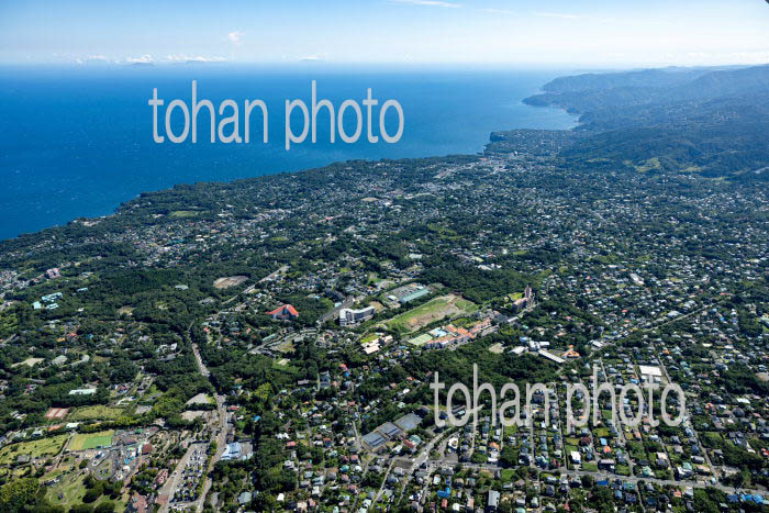 大室山,伊豆シャボテン動物公園と伊豆高原の別荘地群より相模湾