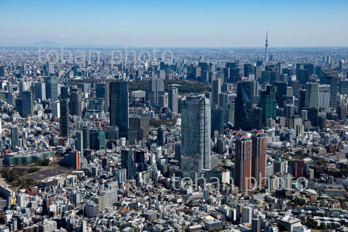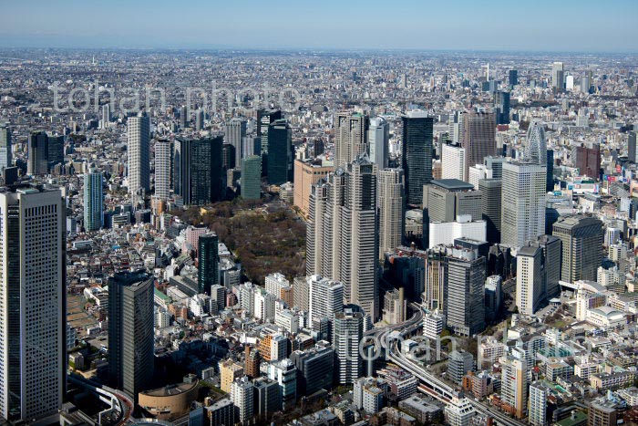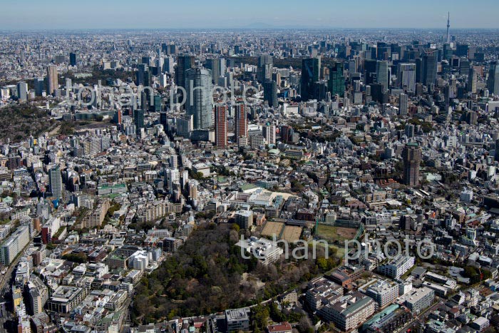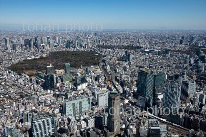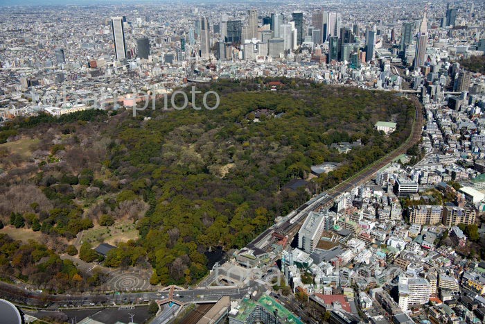 原宿駅周辺と代々木公園と新宿ビル群方面(2020/3)