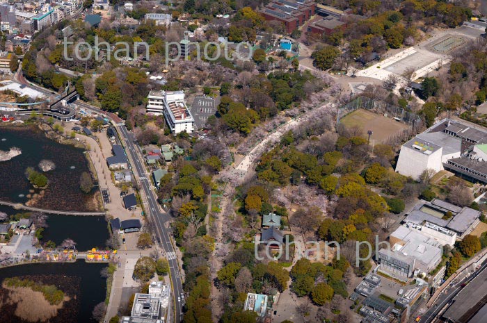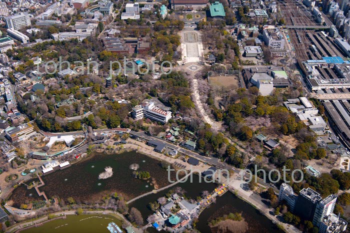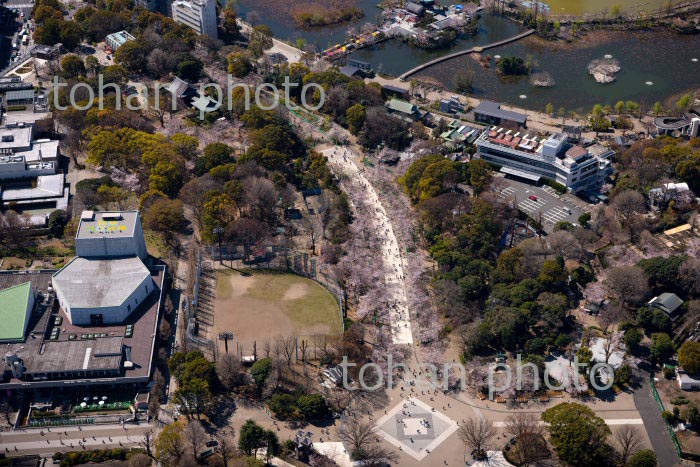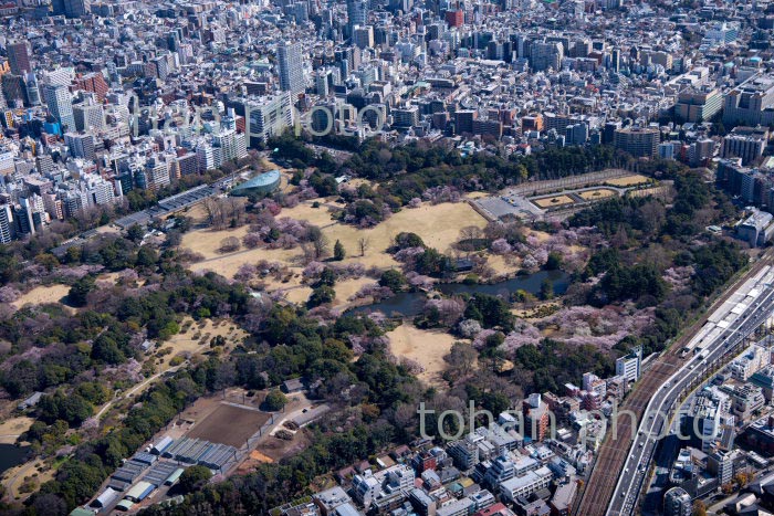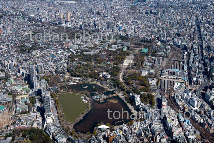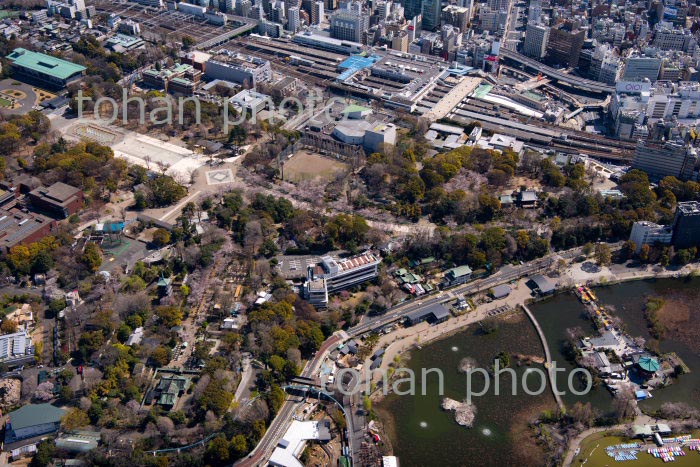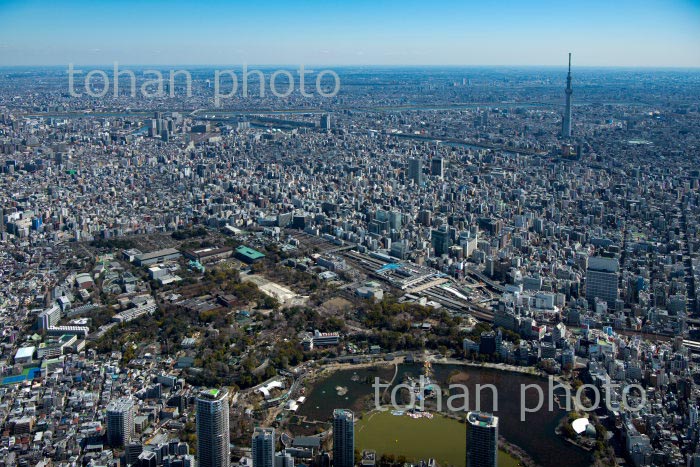 満開の桜の上野恩賜公園と上野駅周辺より浅草方面(2020/3)
