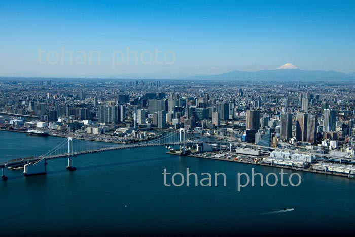 レインボーブリッジ(東京港)より東京の街並みと富士山(2020/3)