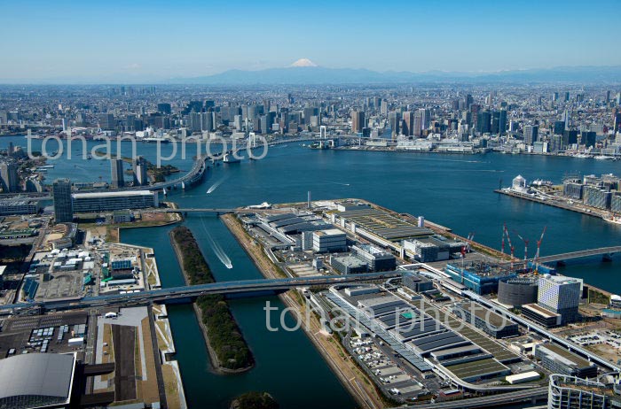 東京都中央卸売市場豊洲市場周辺より東京の街並みと富士山(2020/3)