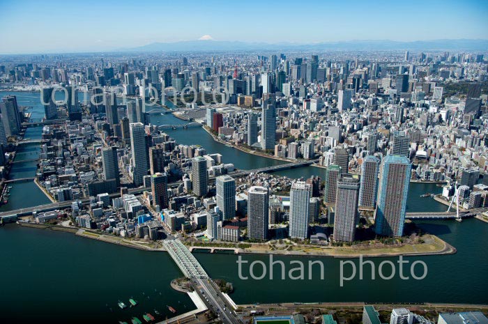 佃島より東京の街並みと富士山(2020/3)