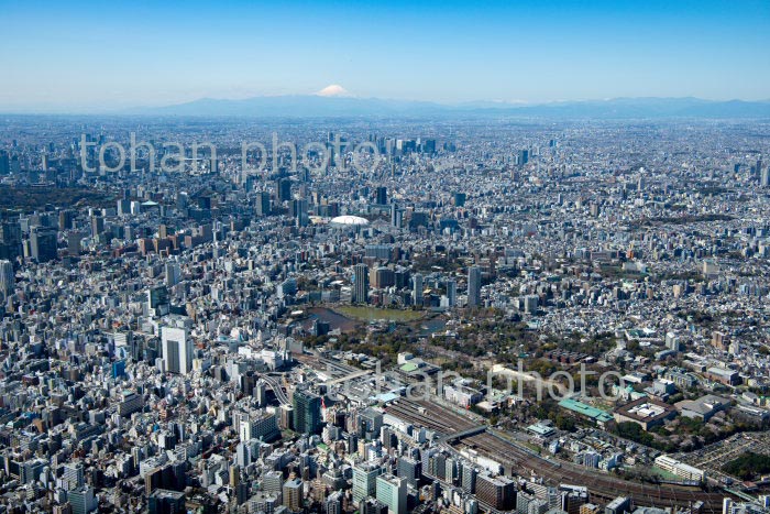 満開の桜の上野恩賜公園と上野駅周辺より東京の街並みと富士山(2020/3)