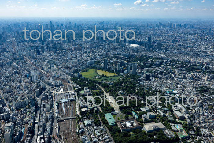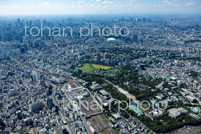 上野駅と上野恩賜公園周辺より東京の街並み(2022/10)
