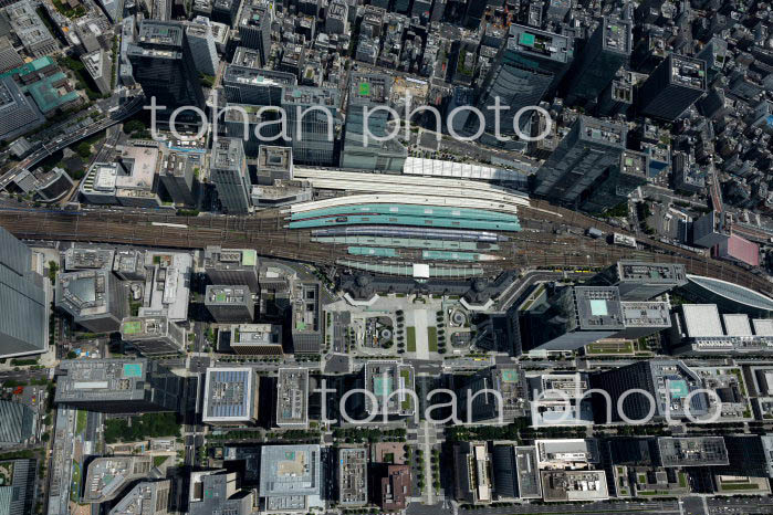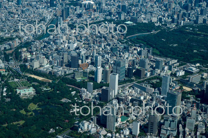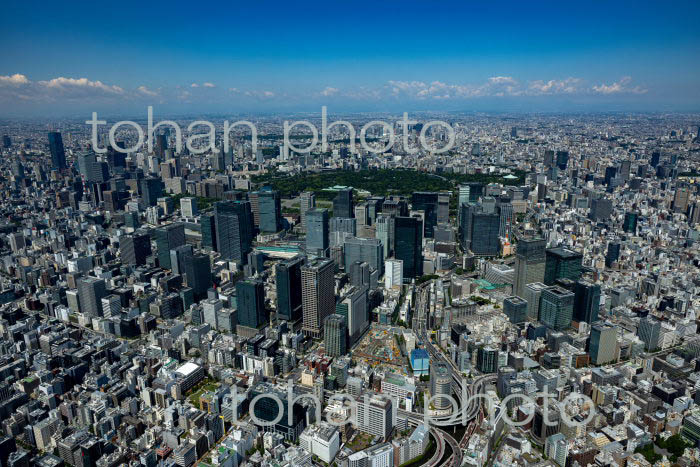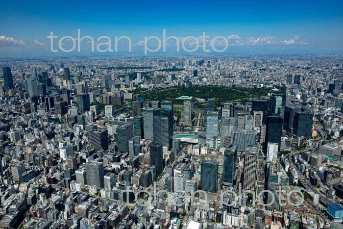 東京駅周辺とビル群(俯瞰撮影)(2022/8)