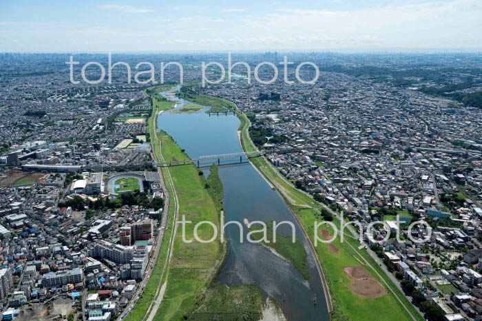 多摩川(京王多摩川駅周辺より下流方面)(2022/8)