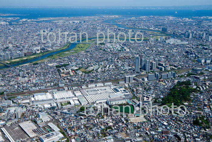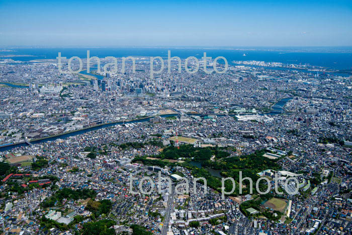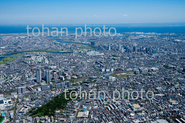 神奈川県立三ツ池公園(梶山,駒岡)周辺より川崎駅,東京湾方面(2019/5)