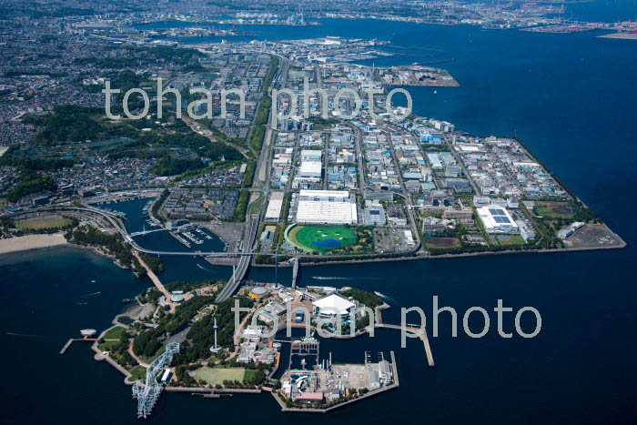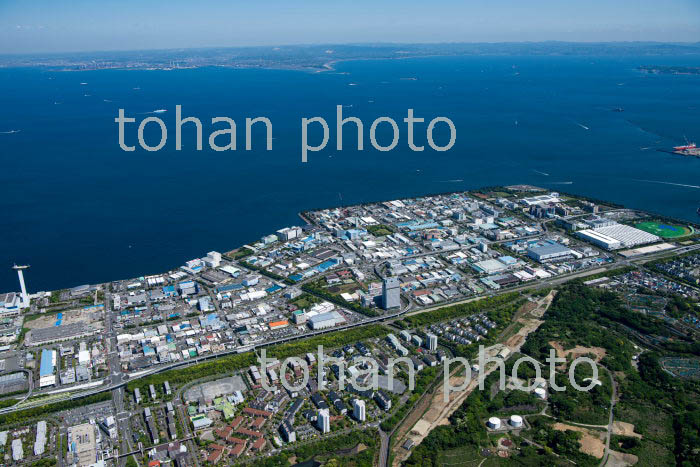 八景島シーパラダイスと横浜機械工業団地,横浜化学工業団地周辺より横浜港(2019/5)