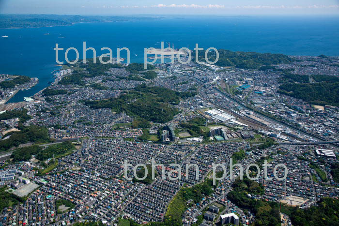 横須賀市桜ケ丘,吉井地区の住宅地周辺より久里浜駅と東京湾(2019/5)